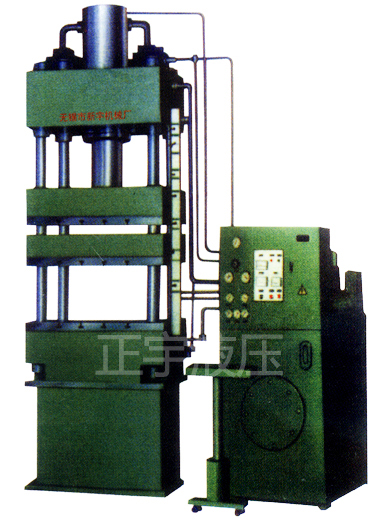 性能特點(diǎn) ★ 計(jì)算機(jī)優(yōu)化結(jié)構(gòu)設(shè)計(jì),四柱式結(jié)構(gòu)簡單、經(jīng)濟(jì)、實(shí)用;框架式結(jié)構(gòu)剛性好、精度高、抗偏載能力強(qiáng)。 ★ 液壓控制采用插裝式基礎(chǔ)系統(tǒng),動(dòng)作可靠,使用壽命長,液壓沖擊小,減少了連續(xù)管路與泄露點(diǎn)。 ★ 采用進(jìn)口PLc控制的電氣系統(tǒng)結(jié)構(gòu)緊湊,工作靈敏,可靠,柔性好;繼電器控制系統(tǒng)工作可靠,動(dòng)作直觀,維修方便。 ★ 通過操作面板選擇 不僅可實(shí)現(xiàn)定程、定壓兩種成形式藝,而且可實(shí)現(xiàn)有墊、無墊、頂出三種工藝工作循環(huán)。